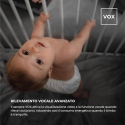 Rilevamento Vocale SMART VOX Questo innovativo monitor attiva automaticamente le funzioni video e audio al rilevamento del pianto o della voce del tuo bambino mantenendoti sempre connesso e informato sulle necessità del tuo piccolo risparmiando batteria