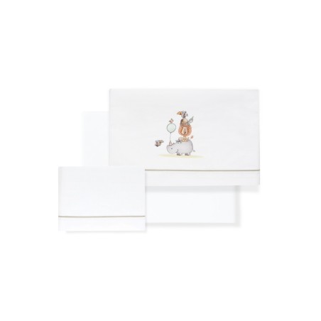 SET 3 PEZZI LENZUOLA PER CULLA PORTA CIUCCIO COTONE RINOCERONTE LEONE