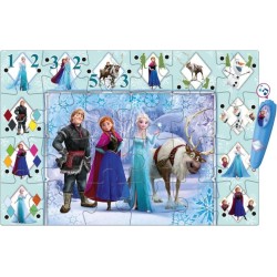 Dopo aver composto l immagine e incastrato nella corretta posizione i tasselli delle forme il bambino potrà giocare con la penna elettronica di Frozen risolvendo divertenti quiz su forme e colori