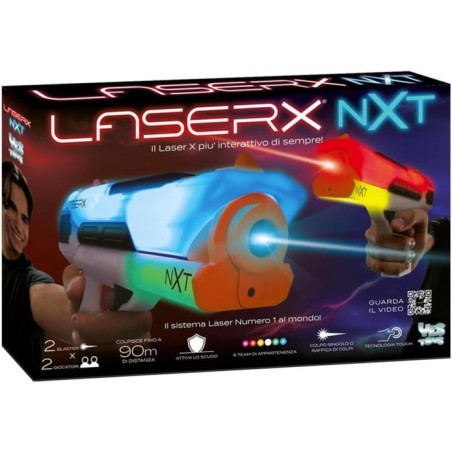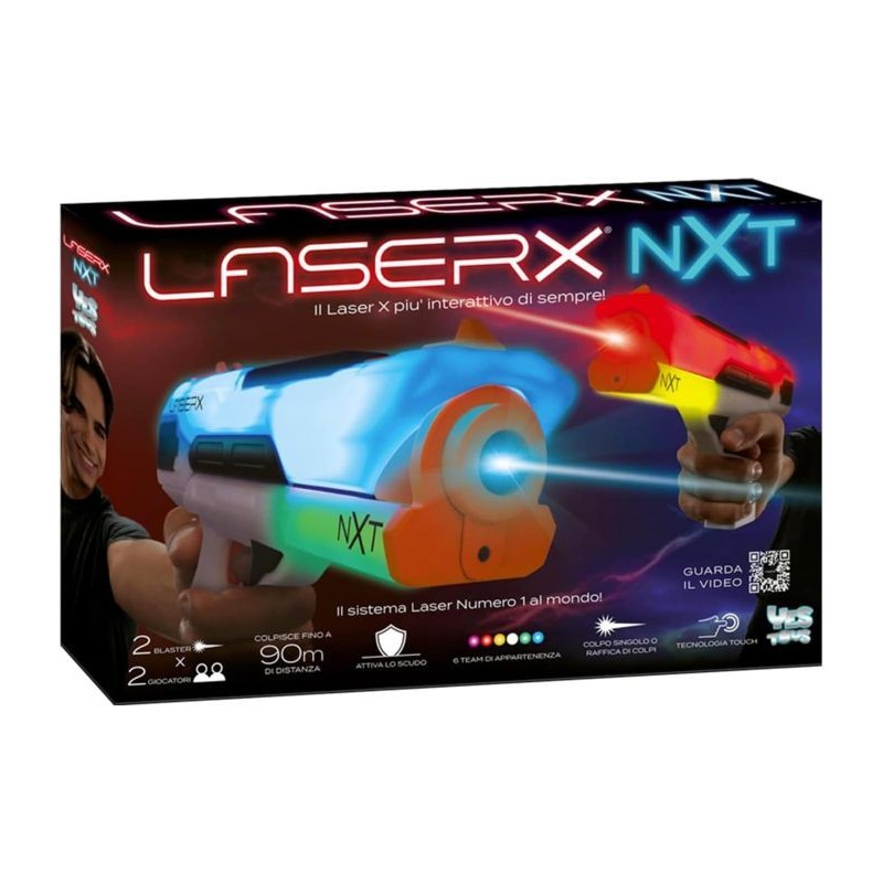 2 Pistole Laser con portata di tiro fino a 90mt Funziona all interno e all aperto Funziona al buio o alla luce del sole Pistole Laser a ricarica rapida Raggi attraversano le finestre e rimbalzano sui muri o specchi Giocatori illimitati