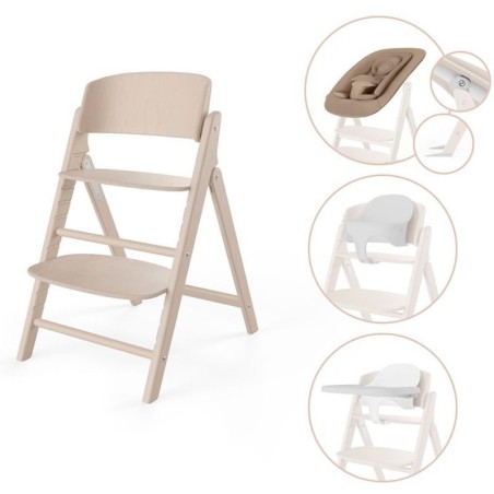 Utilizza l iconico seggiolone Click Fold dalla nascita fino a 99 anni con questo set 4 in 1 Abbina questo seggiolone in legno di faggio alla Bouncer o al Baby Set con vassoio così avrai al tuo fia