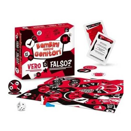 Imparare giocando si può vedere un arcobaleno di notte Gli elefanti sanno nuotare Dracula è esistito davvero E' tutto vero Scoprilo giocando al nostro gioco Bambini contro Genitori Vero o falso Due diversi pacchetti di carte il gioco comprende un mazzo per i bambini e uno per i genitori Il gioco presenta domande appositamente studiate per bambini e genitori in modo che le risposte siano adeguate all età