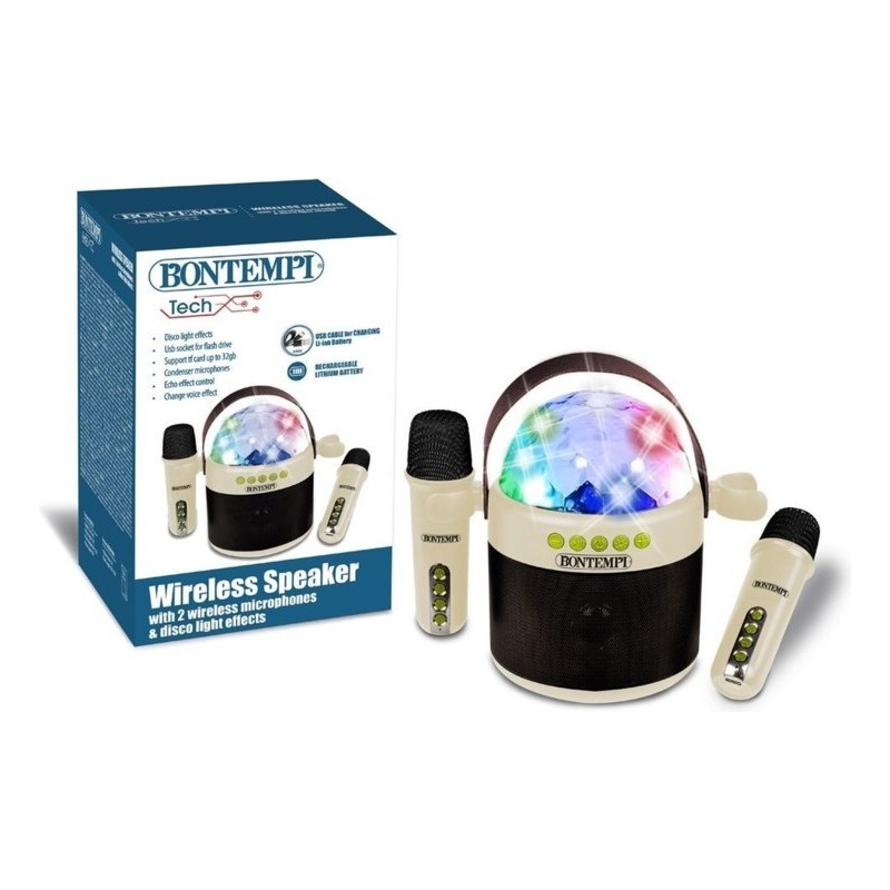 AMPLIFICATORE WIRELESS CON 2 MICROFONO WIRELESS E DISCO BALL CON EFFETTI