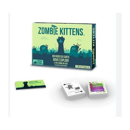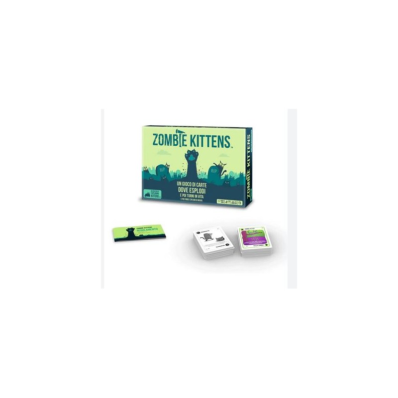 Gioco stand alone della linea Exploding Kittens Un gioco di carte dove esplodi e poi torni in vita E poi forse esplodi di nuovo Exploding Kittens è una versione altamente strategica e potentemente felina della roulette russa I giocatori pescano carte fino a quando qualcuno non pesca una carta Exploding Kitten A quel punto quel qualcuno esplode ed è morto ma non è finita qui Usate potenti carte per muovere o evitare la carta Exploding Kittens e Risorgete dalla tomba con la carta Zombie Kitten per avere la vostra vendetta L ultimo giocatore vivo vince Giocatelo da solo oppure unite una qualsiasi altra versione Exploding Kittens per giocare una mega partita