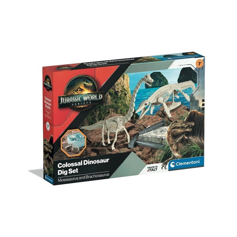 Una scatola di scavo contenente 2 mattoni da scavare per scoprire i resti fossilizzati sepolti del terribile Mosasaurus e dell immenso Brachiosaurus Scava i mattoni con il martello e lo scalpello per scoprire gli scheletri da assemblare Il manuale illustrato guida il bambino attraverso attività facili e divertenti e fornisce informazioni scientifiche su queste incredibili creature