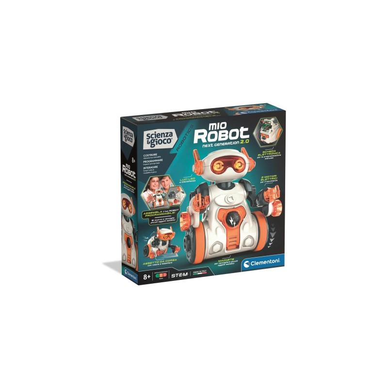 Un Robot divertente ed educativo da assemblare e con tante modalità di gioco Il robot è in grado di muoversi e piegarsi per trasportare oggetti grazie al grande magnete posizionato al centro del prodotto Mio Robot è un gioco pendato per apprender i principi della robotica con un approccio STEM divertente e integrato