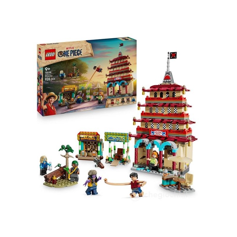 Questo set di giochi LEGO ONE PIECE consente di dar vita all epica resa dei conti tra i Pirati di Cappello di Paglia e i Pirati di Arlong Oltre alla pagoda costruibile in mattoncini il set contiene le minifigure LEGO dei personaggi di ONE PIECE di Luffy con pezzi per allungarne le braccia Nami Usopp Arlong e Chu I piccoli possono far crollare il modello di casa giocattolo LEGO durante la battaglia toccandola sulla parte superiore con il tiro a segno invece i bambini si divertiranno a colpire i bersagli grazie agli shooter Il cattivo Arlong può essere posizionato su un trono all interno dell edificio dell attacco degli squali Chu può bere qualcosa nella baracca mentre la foresta contiene un iconica bottiglia di ketchup Questo set da gioco da pirata comprende inoltre shooter e vari accessori tra cui 3 poster Ricercato