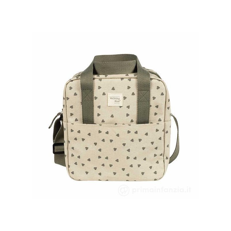 Borsa termica per bottiglie Poppy Muschio con cuori Mantiene la temperatura per 4 ore Include anche una maniglia lunga per appenderla alla spalla e una maniglia corta per portarla a mano Ottima qualità e molto stile Realizzata in materiale resistente e facile da pulire Walking Mum protegge il tuo bambino utilizzando i migliori tessuti privi di coloranti azoici e sostanze nocive per la salute La nostra collezione Walking Mum mantiene tutta la qualità del marchio Pasito a Pasito ma con uno stile urbano e moderno distintivo che non passa inosservato per vestirti in modo diverso durante le passeggiate con il tuo bambino Le borse per maternità in questa linea sono più sportive e pratiche appositamente progettate per mamme e papà moderni che apprezzano i design più attuali e alla moda senza trascurare la qualità e la funzionalità degli accessori che rendono tutte le passeggiate con i loro bambini più confortevoli Specifiche Materiali 100 cotone rivestito Dimensioni 20X22X12 cm