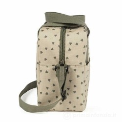 Borsa termica per bottiglie Poppy Muschio con cuori Mantiene la temperatura per 4 ore Include anche una maniglia lunga per appenderla alla spalla e una maniglia corta per portarla a mano Ottima qua