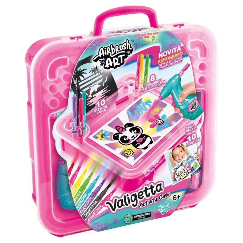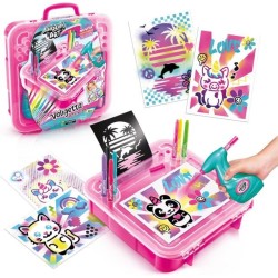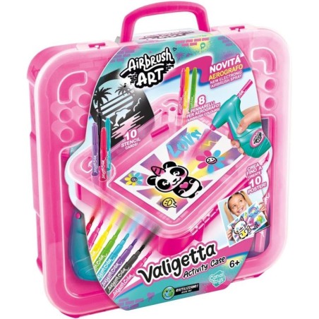 Contiene tutto il necessario per creare disegni unici un aerografo coloratissimo pennarelli stencil fogli da disegno