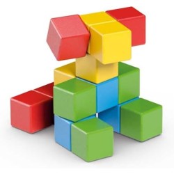 La scatola contiene 16 blocchi magnetici Magicube in 4 diversi colori rosso giallo blu e verde