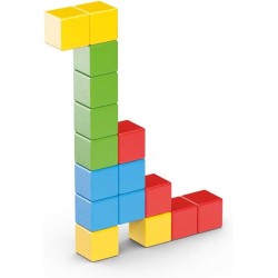 La scatola contiene 16 blocchi magnetici Magicube in 4 diversi colori rosso giallo blu e verde