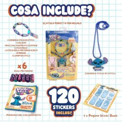 OLTRE 120 ADESIVI STITCH DA COLLEZIONARE scoprite tutte le immagini degli sticker contenuti nel kit per fare braccialetti Sticki Rolls con oltre 120 adesivi per bambini a tema Stitch da collezionare Ogni rotolo contiene adesivi diversi godetevi la magia della sorpresa ogni volta che li srotolate