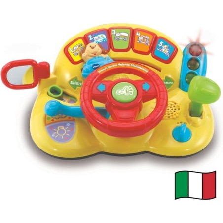 GIOCO DINAMICO il volante interattivo muove una simpatica macchinina con cagnolino permettendo di esplorare veicoli animali numeri e colori in modo divertente