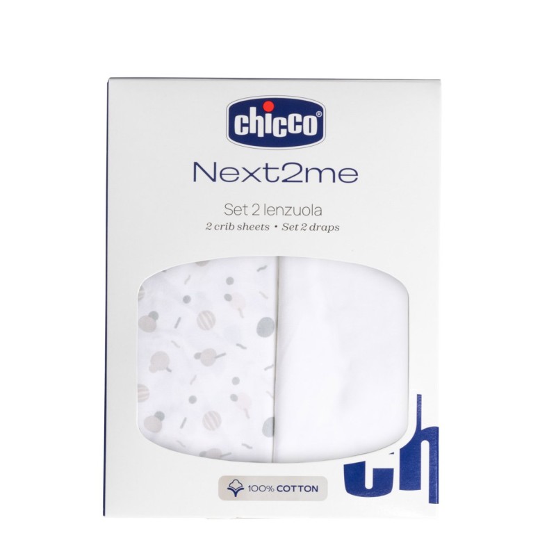 Set completo include sia un lenzuolo superiore che uno inferiore offrendo massimo comfort durante il riposo Cotone morbido lenuzola realizzate al 100 in cotone materiale delicato ideale per la pelle sensibile del tuo bambino Dimensioni Compatibile con tutti i modelli Chicco Next2Me ad eccezione del Chicco Next2Me Forever e con lettini con una dimensione del materasso di 50x83 cm Materiale 100 cotone