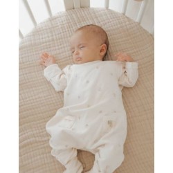 La tutina Pure è una tuta intera con bellissime taschine sul davanti dotata di pratiche clip di chiusura sul dietro e morbide cuciture Il tessuto della collezione Pure è realizzato a partire dalla fibra di bambù naturale con un lato in jersey pettinato Questa tecnica dona al tessuto un effetto semi felpato mantenendo una morbidissima freschezza Il tessuto è inoltre morbidissimo e delicato realizzato appositamente per la pelle dei neonati e ideale anche per chi soffre di dermatite Della stessa collezione puoi trovare anche le babbucce i cappellini le copertine Disponibile nelle misure 1M 3M 6M Composizione 95 Bambù 5 Elastine Codice di riferimento 210