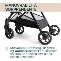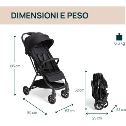 PRATICO E LEGGERO Una volta chiuso è molto facile da trasportare grazie alla barra di protezione che può essere utilizzata come maniglia urbino è dotato di ammortizzatori e cuscinetti a sfera sulle ruote posteriori e sul meccanismo di sterzo
