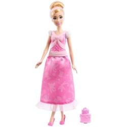 Questa bambola Cenerentola facile da vestire è dotata di due corpetti intercambiabili e di due gonne con le icone stampate delle sue storie