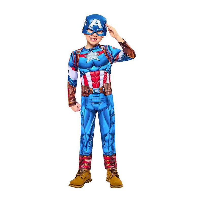 COSTUME CAPTAIN AMERICA BLACK LINE CON MUSCOLI TAGLIA XS 5 6 ANNI