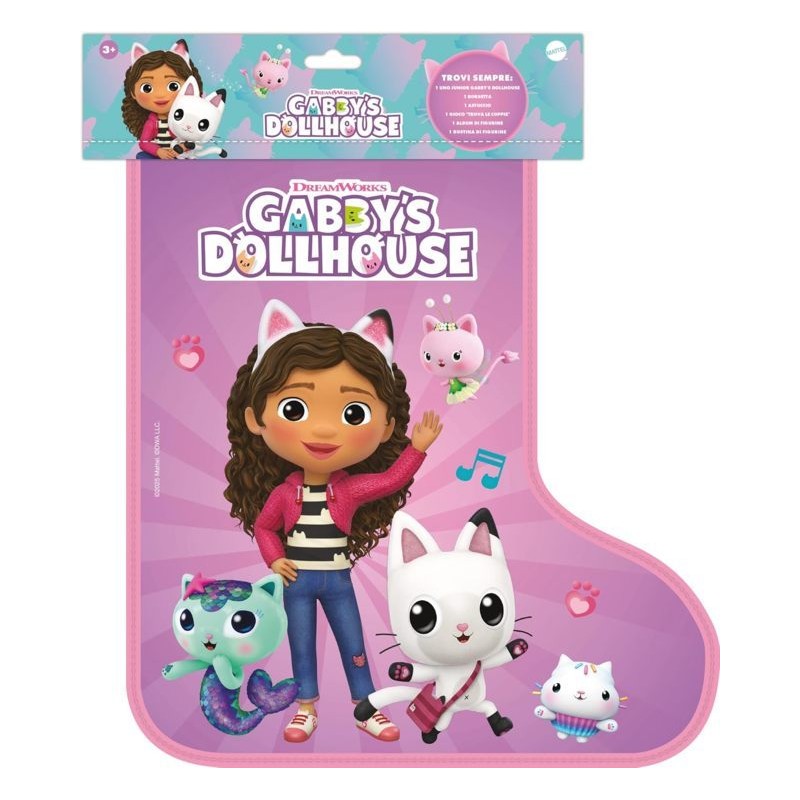 In più ogni calza contiene sempre un Album figure PANINI e una busta di figurine PANINI di Gabby s Dollhouse per collezionare tutti i momenti del magico mondo di Gabby
