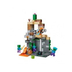Il giocattolo LEGO Minecraft è ambientato nel bioma del deserto del gioco e presenta una minifigure LEGO Minecraft di Wastelands dotata di un armatura di diamante mazza e netherite una melma e 3 figure zombie di Minecraft tra cui una con leggings incantati e spada d oro e una con casco di diamanti Le caratteristiche pratiche includono una camera rotante e zombie spawning e un pezzo scorrevole che innesca una caduta di roccia Altri accessori per ispirare un gioco immaginativo includono un tavolo da artigianato una torcia e un forziere contenente pane ossa e carne marcia