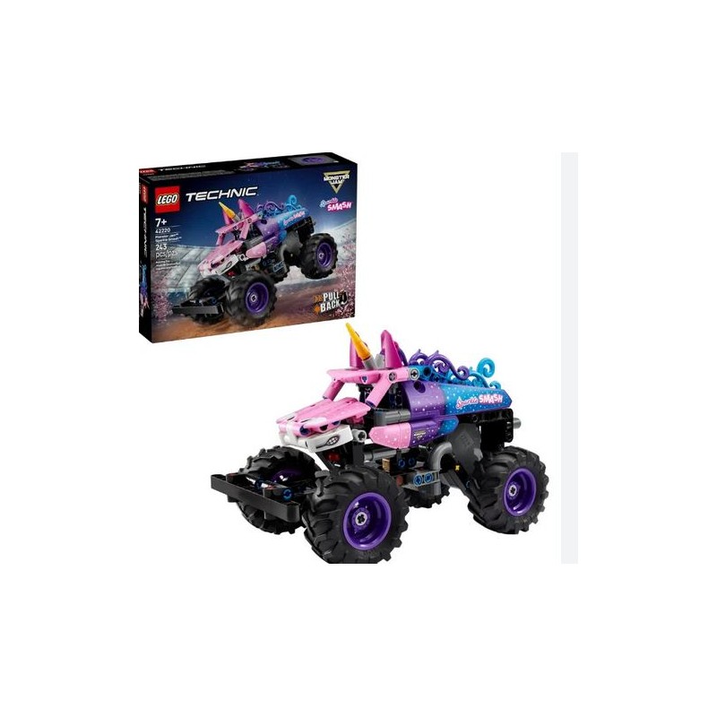 Usa la funzione di pull back per inviare il camion Sparkle Smash 42220 che sfreccia lungo quindi ricrea le fantastiche acrobazie eseguite da iconici monster truck Questo giocattolo di monster truck unicorno dettagliato viene fornito con dettagli di design autentici come le stelle scintillanti e l iconico corno unicorno ispirato al vero camion Sparkle Smash