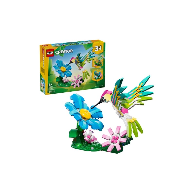 Le ragazze e i ragazzi amanti degli animali di 8 anni possono giocare storie affascinanti con questo giocattolo da costruzione LEGO Creator 3 in 1 Wild Animals Colorful Hummingbird 31384