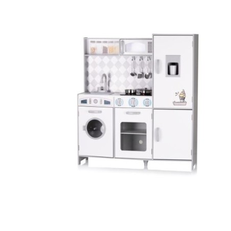 CUCINA IN LEGNO BIANCA CON FORNO LAVATRICE E FRIGORIFERO LUCI E SUONI