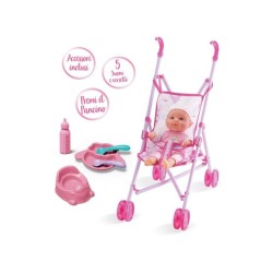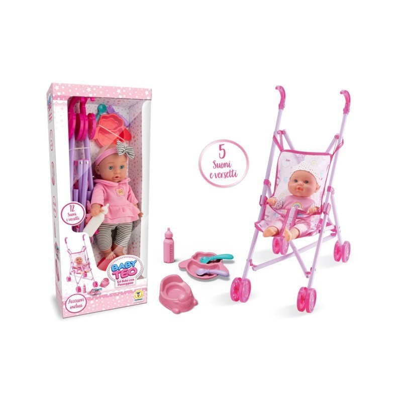 BAMBOLA CON PASSEGGINO E ACCESSORI BABY TEO