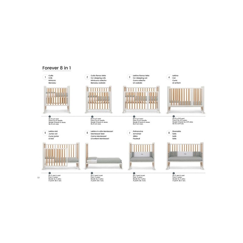Il Forever 8in1 di Brevi è il lettino evolutivo pensato per accompagnare il tuo bambino dalla nascita fino alla crescita trasformandosi facilmente in diverse configurazioni grazie al suo design modul