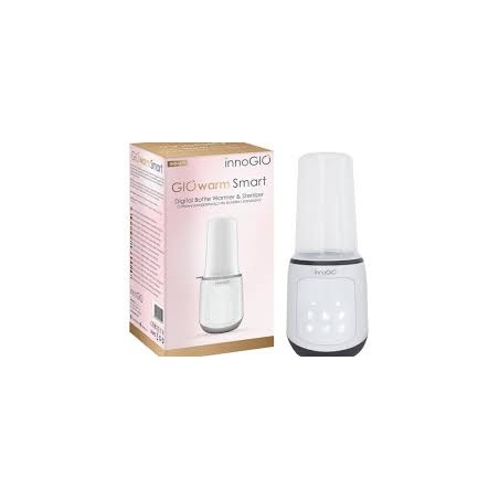 L alta potenza del dispositivo garantisce un riscaldamento e una sterilizzazione rapidi e sicuri Il pannello di controllo digitale è chiaro grande e facile da usare Il riscaldatore è dotato di una base ampia e di un portabiberon grande adatto alla maggior parte dei biberon Il GIOwarm Smart è inoltre dotato di un sistema di protezione contro il surriscaldamento e di uno spegnimento automatico che si attiva al termine della sterilizzazione Un segnale acustico a cinque toni ti informerà quando il dispositivo ha completato il ciclo di funzionamento