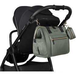 Con il suo design elegante e la sua disposizione funzionale questa borsa assicura che tutto il necessario per una giornata fuori con il bambino sia organizzato e accessibile Materiali pregiati e dettagli in raso Fasciatoio incluso Clip per un facile aggancio al maniglione del passeggino