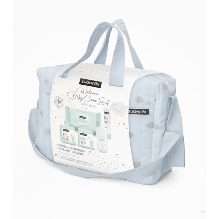 La Borsa Cosmetica Azzurra di Suavinex è ottimo come set regalo o idea regalo nascita Un elegante borsa che comprende un set pratico e funzionale contenente tutto il necessario per la cura quotidian