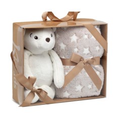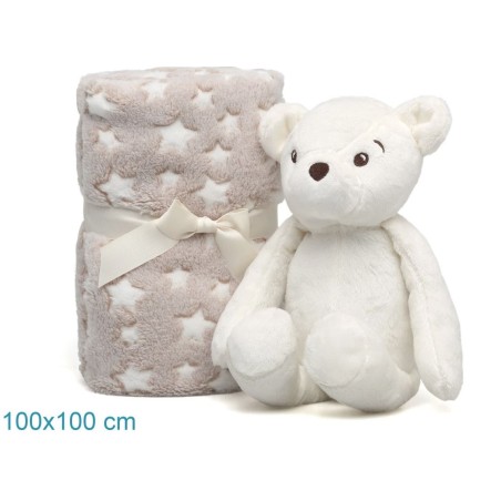 Questo morbido orso di peluche bianco accompagnato da una coperta in pile con stampa di stelle è il compagno ideale per i primi mesi del bambino Perfetto da abbracciare e confortare sia a casa che