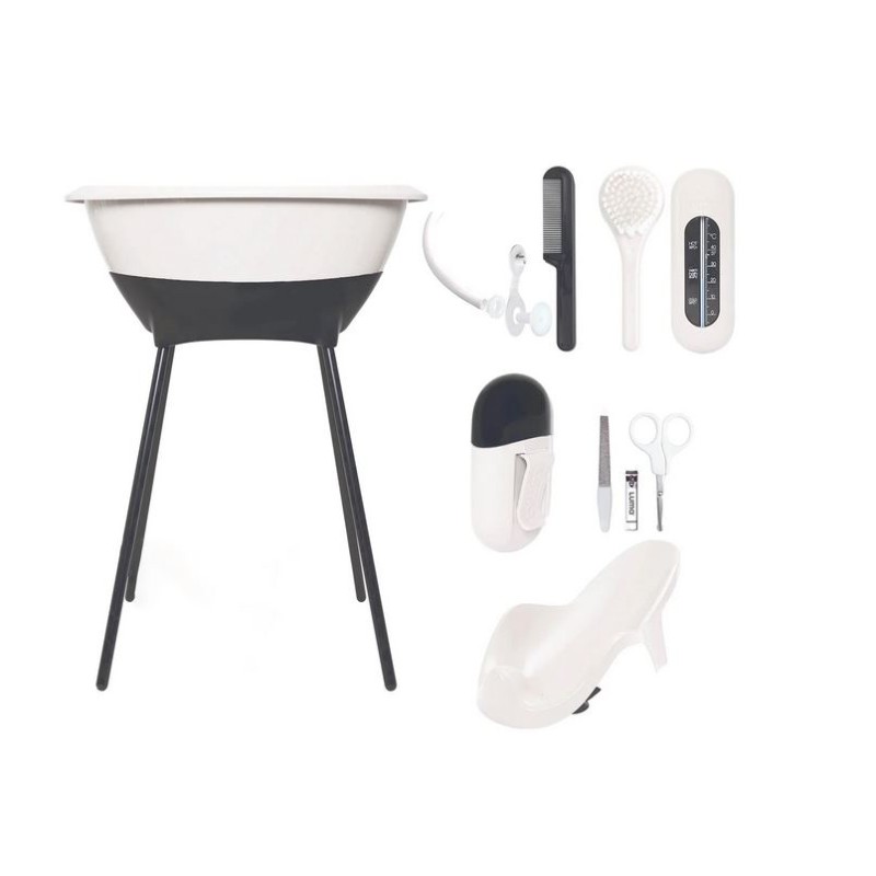 In questo set per il bagno e la cura LUMA troverai tutto ciò di cui hai bisogno per prenderti cura del tuo neonato Contiene oggetti indispensabili nella cura quotidiana del tuo bambino bagnetto supporto bagnetto seggiolino da bagno kit per manicure pettine spazzola termometro da bagno e tubo di scarico Questo è tutto ciò di cui hai bisogno per il tuo bambino