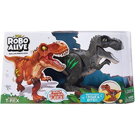 Un T rex più vero che natura per giocare per ore e ore e far paura a tutti Questo dinosauro gigante della marca Zuru è impressionante di realismo E' elettrico e funziona da solo Misura 32 cm questo dinosauro spaventerà piccoli e grandi e vi darà l impressione di essere restituito all epoca del credito Per mettere ancora di più i piccoli questo dinosauro produce suoni e luci Waouh Inoltre la bocca si apre e le braccia si muovono Fa parte di un assortimento di diversi modelli verde e rosso Prodotto venduto singolarmente Venduto secondo disponibilità Richiede 2 batterie LR06 non incluse