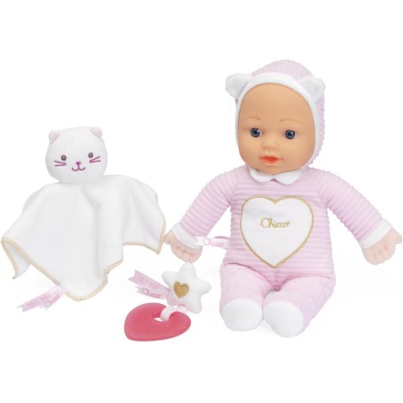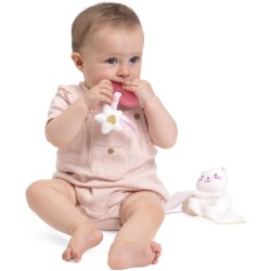 DOUDOU E DENTINALE INCLUSI Include un soffice doudou 20x20 cm con la testolina a forma di gattino ideale per rassicurare il neonato Il dentinale a cuore è decorato con glitter dorati e una stellina ricamata per alleviare i fastidi della dentizione