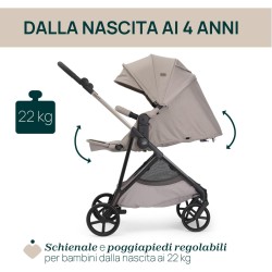 SEDUTA AMPIA E IMBOTTITA La seduta ampia e imbottita lo schienale completamente reclinabile in infinite posizioni e il poggiapiedi regolabile rendono Seety incredibilmente confortevole per il bambino