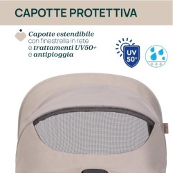 AMPIA CAPOTTINA Seety garantisce passeggiate tranquille e confortevoli grazie all ampia capottina che protegge il bambino dai raggi UV50 e dalla pioggia trattamento WTR e alla finestra peekaboo in rete che aiuta i genitori a tenere sempre d occhio il bambino