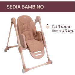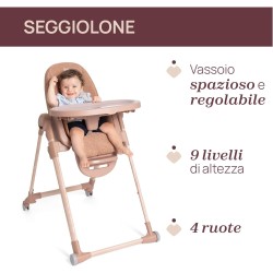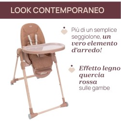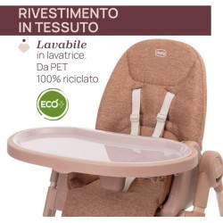 SEGGIOLONE CHICCO CON DESIGN CONTEMPORANEO 6 finiture di tubi abbinate a 6 diversi colori di cuscini di seduta i cuscini sono realizzati in 2 materiali diversi ecopelle e tessuto entrambi lavabili in lavatrice i cuscini in tessuto sono realizzati al 100 con PET riciclato