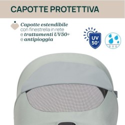AMPIA CAPOTTINA Seety garantisce passeggiate tranquille e confortevoli grazie all ampia capottina che protegge il bambino dai raggi UV50 e dalla pioggia trattamento WTR e alla finestra peekaboo in rete che aiuta i genitori a tenere sempre d occhio il bambino