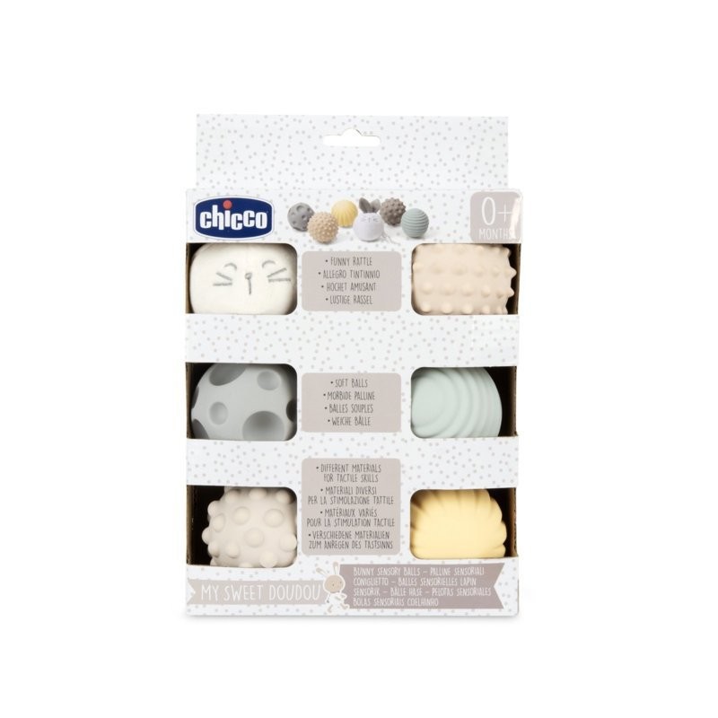 Set di palline multisensoriali che combinano diverse texture e materiali per stimolare i sensi del bambino e accompagnarlo nel gioco e nella scoperta