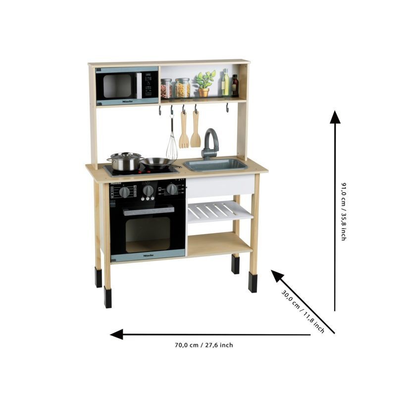 Questa cucina per bambini nel design Miele è realizzata con legno di alta qualità ed ha tutto ciò di cui hanno bisogno i piccoli buongustai per cucinare