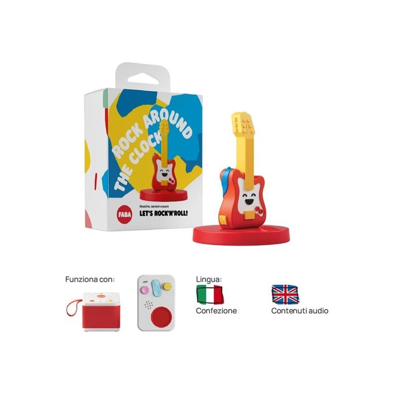 PERSONAGGIO SONORO da posizionare su FABA Raccontastorie o su FABA grazie al quale bambini e bambine possono ascoltare in autonomia storie canzoni e filastrocche LETS ROCKNROLL Una travolgente playlist di 15 canzoni per un viaggio alle origini del rock n roll Gli intramontabili successi di Rock Around the Clock Johnny B Goode e molti altri reinterpretati da voci di bambini e bambine faranno cantare e ballare tutta la famiglia Che si tratti di una festa di compleanno o di un allegro pomeriggio di giochi è sempre il momento giusto per scatenarsi con un po di rock n roll COMPATIBILITA' compatibile con entrambi i Raccontastorie FABA Il Raccontastorie non è incluso Per ascoltare il contenuto se hai FABA Raccontastorie aggiornalo con lapp per computer MyFaba se hai FABA connettiti al Wi Fi ETA' CONSIGLIATA PER L ASCOLTO 3 5 anni E' adatto come intrattenimento a tutte le età AREE DI SVILUPPO Creatività STIMOLA IL LINGUAGGIO Uno studio dellUniversità di Trieste ha mostrato un miglioramento del 46 nel vocabolario di bambini in età prescolare che ascoltano contenuti audio con il Raccontastorie FABA per unora a settimana DURATA circa 35 minuti EDITORE Countdown Media