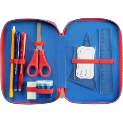 AMPIO E COMPLETO L astuccio è ampio ed è completo di tutta la cancelleria necessaria per la scuola Include 18 pennarelli 18 matite colorate matita gomma penna cancellabile blu Frixion penna rossa righello temperino con serbatoio forbici con punta arrotondata squadra ed etichette portanome