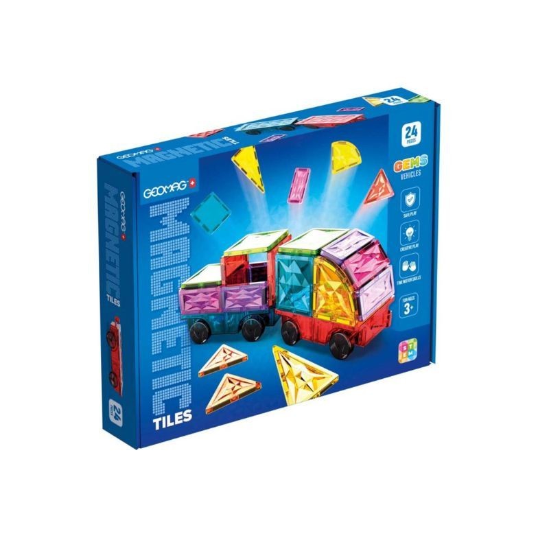 COSTRUZIONI MAGNETICHE GEOMAG MAGNETIC TILES GEMS VEHICLES 24 PEZZI
