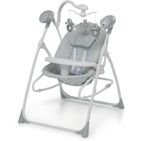 Sistema a dondolo con dispositivo di bloccaggio e sbloccaggio con movimento basculante temporizzato a 5 velocità Vassoietto amovibile barra rotante con peluche e luce con diversi colori Movimento continuo o con Timer impostato a 15 30 60 minuti di funzionamento