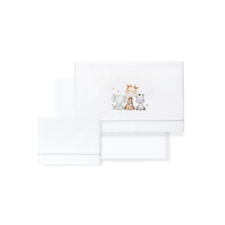 SET 3 PEZZI LENZUOLA PER CULLA PORTA CIUCCIO COTONE GIRAFFA ELEFANTE