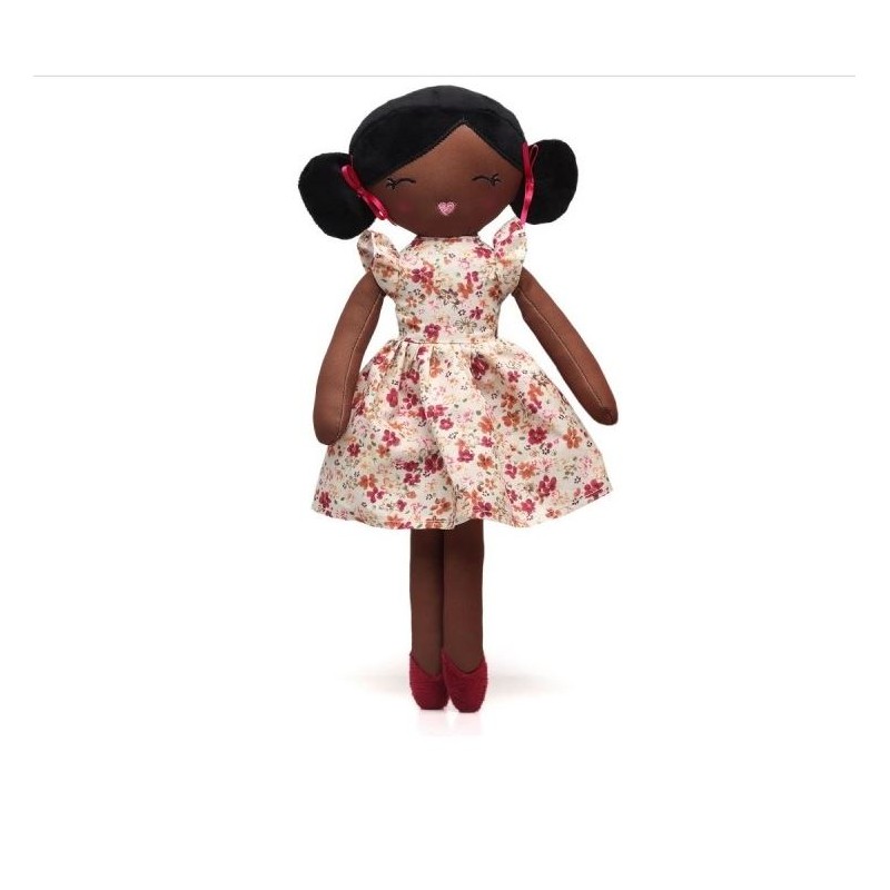 Questa bambola di pezza Kiokids è pensata per diventare la migliore compagna di giochi e di coccole dei più piccoli Con il suo vestito a fiori e i suoi fiocchetti rosa tra i capelli trasmette tenere