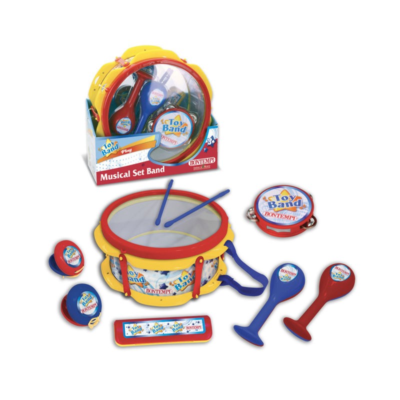 kit musicale assortito 2 maracas 1 tamburello 2 nacchere 1 flauto 1 tamburo con palline ed 1 fischietto